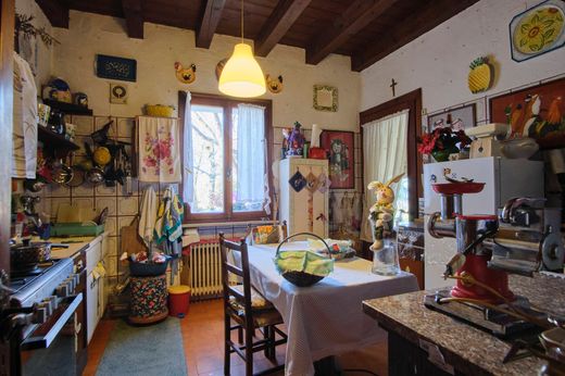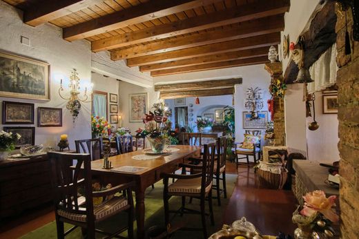 Varcando l’ingresso principale, si viene accolti in un ambiente maestoso che introduce a un salone con zona pranzo impreziosito da un magnifico camino la cui trave risale ai tempi di Giotto. La cucina, dal sapore autentico, è affiancata da una seconda sala da pranzo con pavimento in tavelle dell’800, anch’essa arricchita da un raffinato camino in muratura. Lo studio e un’ampia area dedicata a laboratorio o zona hobby completano il piano terra, offrendo spazi versatili e funzionali.