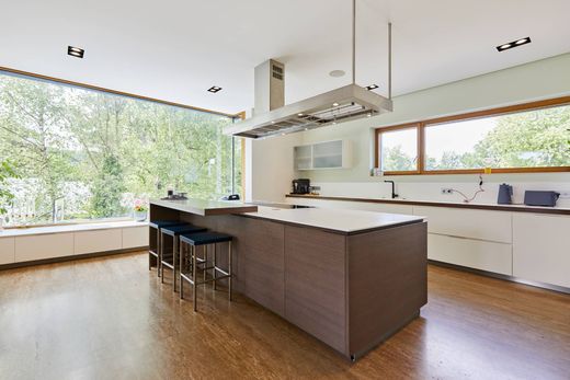 Magnifica villa immersa nel cuore della foresta all'interno del prestigioso Domaine Brameschhof a Kehlen, a soli 15 minuti dalla città di Lussemburgo. Questo esclusivo complesso residenziale offre un ambiente abitativo raro, che combina assoluta tranquillità, natura lussureggiante e immediata vicinanza alla capitale. Costruita nel 2010 su un terreno di 27,25 are, questa proprietà di 670 m² si presenta in condizioni impeccabili. Costruita con materiali di pregio come pietra naturale e pavimenti in legno massello, e dotata di caratteristiche tecniche all'avanguardia, soddisfa i più elevati standard di comfort ed eleganza. Il piano terra si apre su un ampio ingresso che conduce a una sala da pranzo inondata di luce naturale, grazie alle ampie finestre a tutta altezza e ai soffitti a doppia altezza. La cucina Varenna è completata da una seconda zona pranzo. Una terrazza coperta con ripostiglio offre una vista libera sul bellissimo giardino paesaggistico esposto a sud. Un ampio soggiorno, una biblioteca, uno studio, un guardaroba e un bagno per gli ospiti completano questo piano. Al piano superiore, la zona notte presenta un soppalco con vista sulla sala da pranzo. Tre camere da letto per bambini, ciascuna con bagno privato, condividono un WC separato. Una quarta camera da letto, con accesso indipendente, può anche beneficiare di uno di questi bagni. Una delle camere dispone di una terrazza privata. La suite padronale comprende un ampio bagno con doccia, vasca, doppio lavabo e WC, oltre a una cabina armadio passante. Una terrazza privata coperta completa la suite. Il seminterrato comprende uno studio indipendente con ingresso indipendente, ideale per ospiti o personale. L'area benessere è dotata di piscina coperta, sauna, doccia e palestra. Una cantina climatizzata, diversi ripostigli e locali tecnici completano questo piano. È inoltre disponibile un garage con spazio per tre auto.