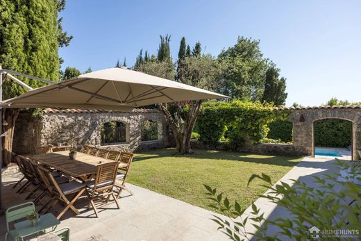 Situato alla fine di una tranquilla strada senza uscita, in posizione tranquilla e elevata, questo affascinante mas in pietra gode di una vista mozzafiato sulle colline circostanti. Originariamente costruita nel XIX secolo, la proprietà è stata splendidamente ristrutturata e ampliata nel tempo, offrendo il fascino senza tempo delle tradizionali case provenzali con dettagli come pietra a vista, antiche piastrelle in cotto, elementi in legno massello e altri materiali nobili. Gli eleganti e intimi saloni si aprono su ampie terrazze e su un giardino splendidamente curato. La casa principale comprende quattro camere da letto, ognuna con bagno privato o doccia. Un delizioso cottage indipendente per gli ospiti offre una quinta camera da letto, garantendo privacy e comfort agli ospiti. Gli spazi esterni sono accoglienti quanto gli interni, con una pool house splendidamente arredata con soggiorno, cucina e bagno con doccia, oltre a numerose terrazze perfette per godersi gli ultimi raggi di sole. Una rara opportunità sulla Costa Azzurra, questa proprietà offre un carattere autentico e una vita raffinata, che ricorda le case più affascinanti del Luberon.