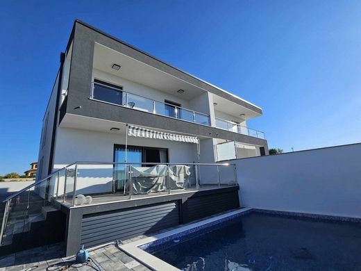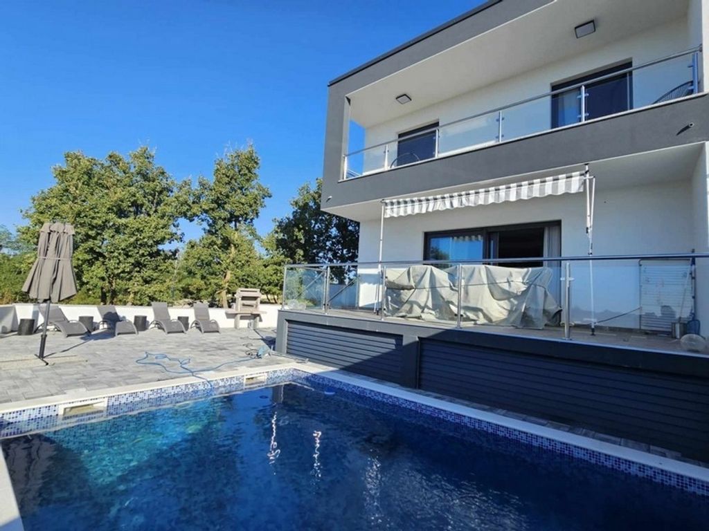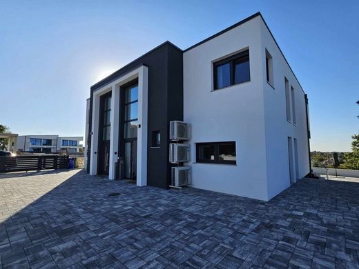 Moderna casa bifamiliare con piscina e vista mare Questa proprietà è una moderna casa bifamiliare con piscina e vista mare vicino a Canfanaro, nella regione di Rovigno, in Istria. La casa bifamiliare ha un giardino di circa 400 m² e offre una superficie abitabile di circa 160 m² su due piani con la seguente disposizione degli spazi: Piano terra: soggiorno con cucina e zona pranzo, bagno, corridoio, terrazza Piano superiore: 3 camere da letto, 3 bagni, terrazza La casa è di alta qualità, inclusi arredi moderni, riscaldamento a pavimento, aria condizionata, piscina, barbecue e due posti auto esterni. Anche la casa bifamiliare vicina (H3613) è in vendita. Non esitate a contattarci per ulteriori informazioni e visite. | Immobili in Croazia | solo proprietà con vista mare e direttamente sul mare | Immobili in Croazia | Proprietà sul lungomare e proprietà con vista mare Mobili italiani, riscaldamento a pavimento (pompa di calore), aria condizionata, piscina, barbecue, 2 posti auto