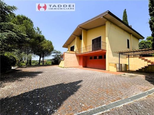 --MONTESPERTOLI - ORTIMINO, VILLETTA INDIPENDENTE, LIBERA SU 4 LATI, CIRCONDATA DA UN PARCO DI 5000MQ. RECINTATA, INGRESSO DAL CANCELLO CARRABILE E PEDONALE, ENTRIAMO NELLA PROPRIETA', DOVE AL PIANO TERRA TROVIAMO UN AMPIA RESEDE CHE CI ACCOMPAGNA AL GARAGE DI MQ.14, CON UN SERVIZIO E UN ULTERIORE SOTTOSUOLO DA ADIBIRE COME ZONA RIMESSAGGIO/CANTINA DI MQ. 33, OLTRE AD UNA LOGGIA DI MQ. 34. SALENDO DALLE SCALE IN COTTO, AL PRIMO PIANO, SI ACCEDE ALL'INGRESSO DELL'IMMOBILE CHE CI ACCOGLIE CON UN BELLISSIMO E AMPIO SOGGIORNO/SALA DA PRANZO CON UN CAMINO, A DIVIDERE LEGGERMENTE GLI AMBIENTI, SU ENTRAMBI I LATI ABBIAMO UNA PORTA FINESTRA DALLA QUALE POSSIAMO ACCEDERE, DA UNA PARTE IN TERRAZZA DALL'ALTRA AL GIARDINO CON GAZEBO, SEMPRE NELLA ZONA GIORNO ABBIAMO UN ANGOLO COTTURA DA ARREDARE CON UN'ELEGANTE CUCINA LINEARE. PASSANDO ALLA ZONE NOTTE TROVIAMO DUE CAMERE MATRIMONIALI, DI CUI UNA CON ACCESSO ALLA SECONDA TERRAZZA E DUE BAGNI FINESTRATI, UNO CON DOCCIA E UNO VASCA. SALENDO DA SCALE A CHIOCCIOLA ARRIVIAMO ALLA MANSARDA DI MQ.50, PRATICABILE, CON UN ALTEZZA MASSIMA DI MT..2,10. CONCLUDE LA PROPRIETA' UN BELLISSIMO GIARDINO CON ULIVI, PIANTE DA FRUTTO E SPAZIO PER METTERE UNA PISCINA CON SDRAIO, OMBRELLONI, GAZEBO E TAVOLO CON SEDIE PER TRASCORRERE PIACEVOLI GIORNATE AL FRESCO E IN TOTALE TRANQUILLITA'. RISCALDAMENTO TERMO/AUTONOMO. CLASSE "E" IPE 98,42 KWH/MQA. - RIF.2/0164 - (agg. 18/06/2025) -
