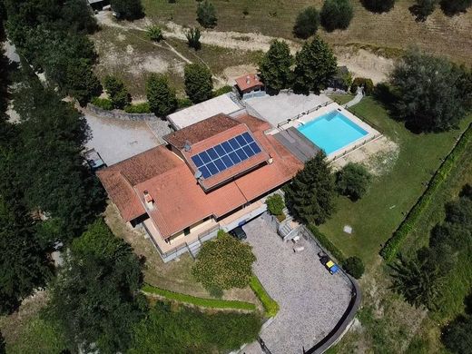 Siamo nel comune di Vernio in Località Celle, la villa di circa 360 Mq è stata edificata nel 2000 e ampliata nel 2015. La struttura è tutta in cemento armato, il tetto è coibentqato con guaina e tegole sul quale è posizionato un impianto fotovoltaico con accumulo di 4,2 Kw Ad oggi la villa è adibita in parte ad accogliente struttura ricettiva B&B dotata di CIN ed in parte ad abitazione. Internamente è composta al pian terreno da sei camere da letto con bagno privato, termostato per la regolazione della temperatura interna ,filodiffusione e tv. Tutte le stanze hanno la particolarità di essere accessibili sia dall'interno dell'abitazione che dall'esterno. Proseguendo al piano terreno troviamo una grande sala per pranzi,cene e colazioni dotata di una cucina a vista e una zona relax con divani e tv. Mediante scala interna si accede al piano superiore dove c'è una ulteriore camera da letto di ampia metratura e un bagno privato. Caratteristica di questo piano è una grande terrazza coperta dalla quale si può godere di una suggestiva vista sulla vallata sottostante. Sempre mediante scala interna dal piano terreno si accede al piano seminterrato della villa dove c'è una grande taverna di circa 70 Mq accessoriata con una cucina a vista ,un forno per pizze e caminetto,lavanderia e ripostiglio Sempre a questo livello troviamo una grande rimessa per auto di circa 100 Mq, un locale tecnico all'interno del quale è alloggiata la caldaia a condensazione per il riscaldamento, un puffer di accumulo per acqua sanitaria, due fusti in acciaio inox da 1000 litri l'uno per l'accumulo e la depurazione dell'acqua e l'autoclave. Esternamente la villa è circondata da circa un ettaro di terreno in parte coltivato ad ulivi ed alberi da frutto dotato di un ingresso per i soli mezzi agricoli. La restante parte del terreno presenta un manto d'erba rasato e curato all'interno del quale è intallata una piscina in cemento armato di 69 Mq dotata di impianto di illuminazione interno, doppio getto d'acqua,trampolino e doccia . Poco distante dalla piscina c'è un gazebo, un solarium ed una struttura in pietra e cemento accessoriata di forno,caminetto e lavandino. Tutto il terreno è illuminato e fornito di più punti acqua. L'acqua per l'irrigazione del terreno agricolo, l'irrigazione del prato e il riempimento della piscina è garantita da un pozzo di acqua sorgiva di proprietà. Gli accessi alla villa sono due, entrambi dotati di cancello meccanizzato, videocitofono ed impianto di allarme