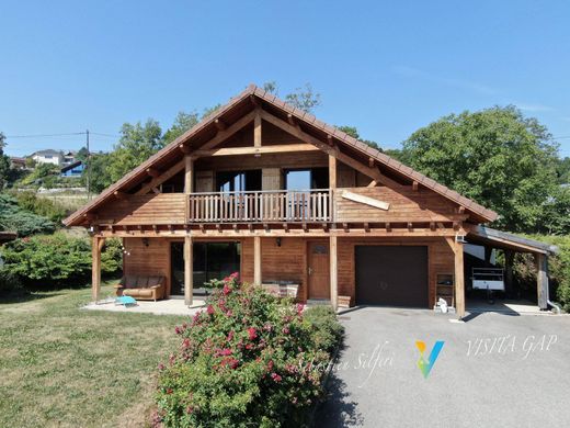 Vicino a GAP, situato sulle alture dei balconi di Gapençais, chalet con struttura in legno costruito nel 2012 che offre 128 m² di superficie abitabile su un terreno recintato e paesaggistico di 1000 m². L'ingresso conduce a un soggiorno di 40 m² con inserto in legno e cucina a vista attrezzata con elettrodomestici, un bagno, un WC separato e una lavanderia. Al piano superiore si trovano un disimpegno, due ampie camere da letto, un ufficio adibito a camera da letto, un ampio soppalco, un bagno con doccia e un WC separato. Una camera da letto e il soppalco beneficiano di un ampio balcone coperto con una magnifica vista sulla regione di Gapençais e sulla valle. Un garage di 31 m² con porta automatica, un posto auto coperto, una terrazza di 18 m² di fronte al soggiorno e un barbecue con forno per pizza completano la proprietà. Il cortile è completamente asfaltato. Rimango a vostra disposizione per fornirvi ulteriori informazioni, inclusi dettagli sulla costruzione e sui materiali utilizzati, e/o per offrirvi una visita. Le spese sono a carico del venditore. Classe energetica D, Classe climatica B. Costo energetico annuo stimato per un uso standard: tra € 1.880,00 e € 2.590,00 per gli anni 2021, 2022 e 2023 (abbonamenti inclusi). Informazioni sui rischi a cui è esposto questo immobile sono disponibili sul sito web di Géorisques: georisques.gouv.fr. Trova l'annuncio dell'agenzia immobiliare Visita su: