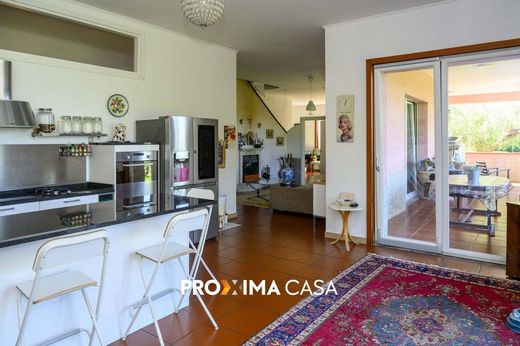 La villa si sviluppa su due livelli e sorge in posizione dominante, regalando una vista aperta e mozzafiato sui dintorni. L'ingresso si apre su un ampio ambiente giorno triplo, un open space luminosissimo che accoglie salotto, zona pranzo e una cucina moderna e funzionale, perfetta per chi ama vivere la casa in modo conviviale.
