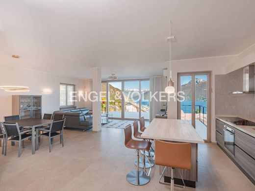 A Menaggio, su un pendio dolce che raccoglie la luce in modo quasi continuo, c’è una casa in cui l’idea stessa di vista panoramica sul lago perde ogni carattere accessorio e diventa condizione dell’abitare, perché da ogni angolo della proprietà - sia che si tratti del soggiorno principale, di una camera da letto, della zona benessere o dal bordo piscina - il lago appare sempre presente. La villa è frutto di una ristrutturazione recente, compiuta con una coerenza che si fonda su una logica funzionale, che si riflette nella distribuzione ordinata degli spazi, nella scelta delle finiture, nella qualità complessiva dell’abitare, capace di valorizzare i volumi esistenti e adattarli a una doppia vocazione: da un lato, quella di residenza principale, solida, permanente, dove ogni ambiente è stato pensato per un uso quotidiano e completo; dall’altro, quella di proprietà polivalente, adatta ad accogliere più nuclei familiari, ospiti, o anche ad essere frazionata, locata, resa produttiva, senza alterare l’equilibrio originario. Divisa in due appartamenti distinti ma comunicanti, la casa dispone in totale di cinque camere da letto e cinque bagni, due zone giorno ampie e luminose, due cucine abitabili e una serie di spazi distribuiti con intelligenza dove ogni elemento trova una posizione coerente. Al piano seminterrato, con un accesso riservato, si apre la zona dedicata al benessere, realizzata con criteri tecnici adeguati e con un’attenzione estetica: sauna, bagno turco, vasca idromassaggio e grandi aperture che lasciano entrare la luce e, ancora una volta, la vista sul lago - come se il progetto avesse voluto ricordare che anche il riposo possa avere un orizzonte ampio. È uno spazio raccolto, pensato per un uso quotidiano, non decorativo. Il giardino, articolato in terrazze leggere, è stato sistemato con sobrietà e misura, mantenendo alcune specie spontanee accanto a coltivazioni semplici, siepi leggere, alberature basse che non sottraggono spazio visivo né interferiscono con l’equilibrio dell’insieme; al suo interno, la piscina panoramica si affaccia sul lago con una vista ampia, senza ostacoli. L’accesso alla proprietà è semplice, con più posti auto disponibili e la posizione è comoda: in una zona residenziale tranquilla, protetta ma non isolata, a pochi minuti dal centro del paese e dai servizi principali, in un contesto che mantiene una qualità stabile anche al di fuori della stagione turistica. Questa proprietà si adatta a diverse destinazioni d’uso: come residenza principale, garantisce ampi spazi e qualità costruttiva; come casa per le vacanze, assicura comfort e semplicità di gestione; come investimento, rappresenta un’opportunità solida in un mercato stabile, con una domanda costante per immobili di questo livello. Senza eccessi né esitazioni questa casa tiene insieme paesaggio e funzionalità con coerenza mentre la vista ampia del lago di Como dà forma a tutto il resto.