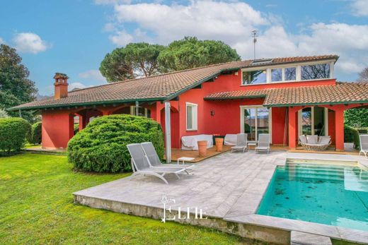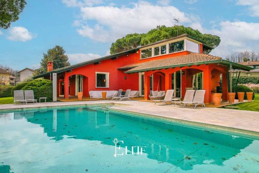 Esternamente, il grande parco piantumato di 4.500 metri quadrati garantisce assoluta privacy grazie alla siepe perimetrale e ospita una splendida piscina con zona solarium, spazi relax e un portico perfetto per pranzi e cene all’aperto. Completano un carport per il ricovero auto e un ampio cortile con ulteriori posti auto scoperti.