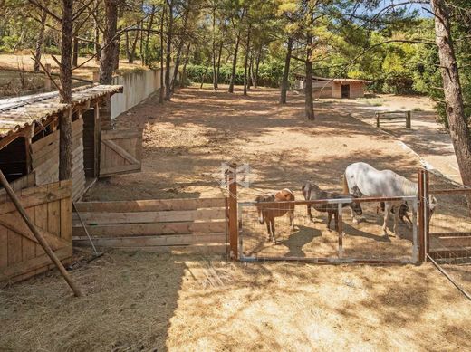 A soli 10 minuti dalle spiagge, immersa in un ambiente verdeggiante tra vigneti e boschi, questa eccezionale villa su un unico piano offre 480 m² di superficie abitabile su un ettaro di terreno paesaggistico, nascosto alla vista. La zona giorno centrale, ampia e inondata di luce, si estende per quasi 130 m². Offre diversi spazi open space: una cucina di lusso esposta a sud, un'elegante sala da pranzo, un soggiorno principale con piscina di fronte e una sala TV più intima. Ogni spazio mantiene un dialogo costante con la natura circostante grazie alle ampie vetrate. La villa comprende 5 suite padronali, ciascuna con bagno e toilette privati. Un appartamento separato con 2 camere da letto aggiuntive, accessibile tramite un ingresso separato, può ospitare familiari, amici o ospiti in assoluto comfort. Gli esterni invitano al relax: due piscine dalle linee pulite, un'ampia terrazza soleggiata, irrigazione automatica tramite pozzo trivellato, un garage chiuso, 3 posti auto coperti e numerosi posti auto. Per gli amanti dei cavalli, un maneggio con 5 box perfettamente attrezzati completa questa rara proprietà. Volumi generosi, materiali nobili, calma assoluta e natura onnipresente: questa proprietà unica coniuga eleganza, discrezione e l'arte di vivere mediterranea.