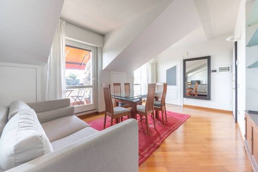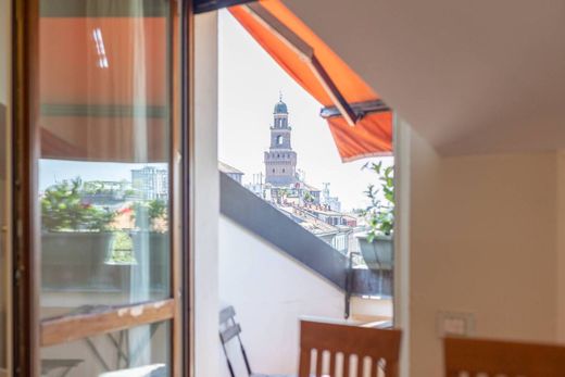 All'immobile si accede attraverso un pianerottolo dotato di ampie vetrate che garantiscono luminosità naturale. Fin dall'ingresso, si gode di una suggestiva vista sul Castello Sforzesco, che arricchisce l’atmosfera dell’appartamento. Il soggiorno accogliente, si distingue per la presenza di tre terrazzini attrezzati con tende elettriche, ideali per godere di momenti di relax all'aperto e ammirare il panorama, incluso un meraviglioso tramonto. Gli spazi interni, pur caratterizzati dalla presenza di travi oblique che conferiscono un tocco di charme, risultano ampi e funzionali.
