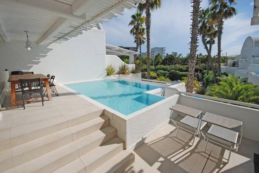 Vendesi appartamento quadrilocale con ampia terrazza sito nel prestigioso residence ‘Villaggio dei Pellicani’, composto da sole 14 unità nella zona di piazza Aurora. Ideale per gli amanti della privacy in quanto l’unità abitativa al primo e ultimo livello gode di piscina privata, lontana da occhi indiscreti. In area comune ampia piscina condominiale riscaldata circondata da un’oasi di palme in un contesto che ricorda l’architettura dell’isola di Mykonos, a soli 5 minuti di passeggiata dalla spiaggia.