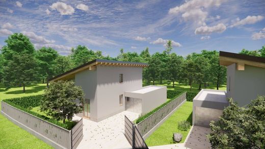 In zona residenziale e tranquilla, proponiamo in realizzazione N.2 ville unifamiliari, caratterizzate da un alto standard qualitativo dei materiali, delle finiture e delle tecniche impiantistiche. Il capitolato è stato accuratamente predisposto con finiture e materiali di pregio, con soluzioni completamente personalizzabili. DESCRIZI2ONE: al piano terreno sono collocati un ampio soggiorno luminoso, una cucina abitabile , un porticato, due camere ed un bagno mentre al piano mansardato troviamo altre due camere ed un servizio igienico. Il tutto contornato da giardino privato di circa 250 mq, e doppia autorimessa. CLASSE ENERGETICA A3 tecnologie d’avanguardia tra cui risaldamento a pavimento con pompa di calore, impianto fotovoltaico, predisposizione antifurto, porta blindata, isolamento termico/acustico, impianto di ventilazione meccanica controllata, tetto in legno lamellare, serramenti in PVC con vetrocamera basso emissivo e ingressi pedonali e carrai indipendenti.