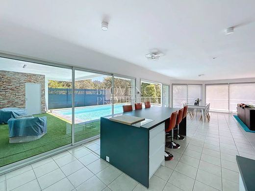 Sognate una villa luminosa, in assoluta pace e tranquillità, con una vista panoramica sul campo da golf? Desiderate godere di ampi spazi abitativi, terrazze e una piscina per rilassarvi in totale privacy? Questa villa è fatta per voi! Situata nel cuore di un complesso residenziale sicuro, con un campo da golf a 18 buche e servizi di lusso (hotel 4 stelle, spa, tennis, piscina, ecc.), questa villa coniuga comfort, modernità e luminosità. Costruita nel 2003 con materiali di qualità, su un terreno terrazzato di 2.050 m², gode di una tripla esposizione Est/Sud/Ovest e offre una vista panoramica sul campo da golf e sul lago. La disposizione della casa sfrutta appieno il terreno terrazzato: i soggiorni si trovano al piano giardino, mentre la zona notte si trova al piano terra. L'ingresso conduce a un disimpegno che conduce a due camere da letto che condividono un bagno con doccia e WC, uno dei quali ha accesso alla terrazza. C'è anche una prima suite con cabina armadio e bagno con doccia, oltre a un WC separato. Al piano giardino, una luminosa superficie abitabile di 83 m² comprende una cucina attrezzata, un soggiorno e una sala da pranzo. Sono inoltre presenti una dispensa/lavanderia, uno studio e uno spazio privato per i genitori, composto da un disimpegno, una camera da letto con accesso alla terrazza, un WC, un bagno con doccia e vasca e uno spogliatoio. La casa dispone di numerose terrazze per un totale di 280 m², un solarium e una piscina di acqua salata di 10x5 m con sistema di filtrazione e controllo automatico del pH. Il giardino è dotato di irrigazione automatica. Tra le dotazioni di lusso figurano la domotica, il riscaldamento a pavimento con pompa di calore, uno scaldabagno termodinamico, un garage doppio, una tettoia di 20 m², un vespaio convertibile e un ampio parcheggio privato. Questa villa è ideale come residenza principale, residenza secondaria o investimento locativo di lusso. Il prezzo è di 780.000 €, spese a carico del venditore, con spese trimestrali di 380 € (ASL). La classe energetica è C (140 kWh/m²/anno) – stima annua: da 1.820 a 2.540 €. Per informazioni sui rischi, visitare georisques.gouv.fr. Stato di rischio e di inquinamento: raggiunto (nullo).