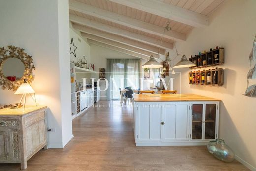 Il giardino, che abbraccia la casa su tre lati, regala scorci verdi e riservati, mentre il calore delle travi a vista e la scelta dei colori interni creano un ambiente autenticamente accogliente. A completare la proprietà, un garage, un posto auto coperto e uno scoperto.