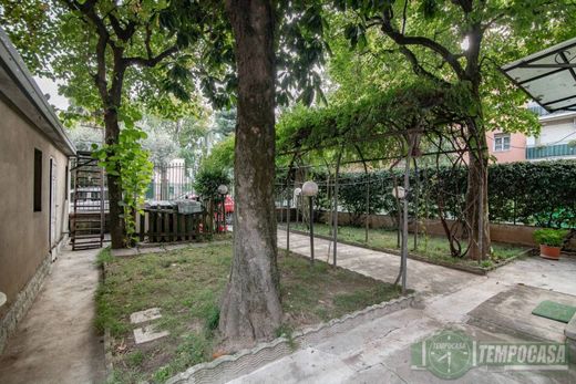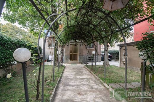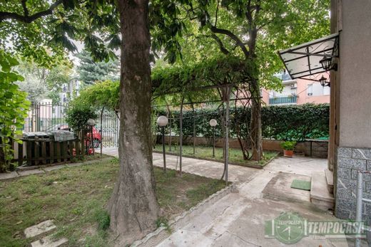 - Il principale, nella via PRIVATA Beccaria, ci porta direttamente al portone della soluzione, accompagnandoci in un suggestivo frascato, dove troviamo le tre porte divise dalle scale interne della soluzione e accanto troviamo anche la cancellata in ferro battuto dell'ingresso dell'autorimessa comunicante con l'interno del giardino;