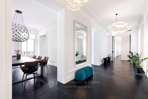 Raro. Avenue Victor Hugo. Al terzo piano di un bellissimo edificio haussmanniano ben tenuto, questo elegante appartamento vanta ampi spazi abitativi (soffitti alti 3,5 metri), completamente ristrutturato con materiali di alta qualità. Esposto a sud, comprende un'ampia galleria d'ingresso, un soggiorno angolare, uno studio, una sala da pranzo, una cucina abitabile attrezzata, una camera da letto principale con bagno privato e cabina armadio, tre camere da letto con bagno privato, ciascuna con doccia e WC, una palestra (che potrebbe essere utilizzata come quinta camera da letto) e una lavanderia. Questo appartamento ha conservato tutto il suo fascino d'epoca (modanature, pavimenti in parquet, caminetti, ecc.) e offre una splendida vista libera su Square Lamartine. Viene venduto chiavi in mano e climatizzato. Una cantina completa l'offerta.