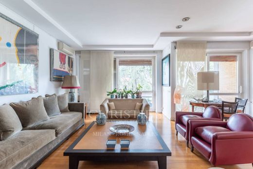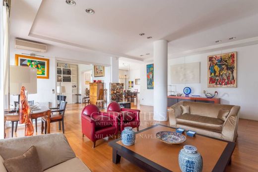 L'attuale disposizione, molto funzionale, comprende un salone triplo di alta rappresentanza che da' accesso ad una terrazza vivibile, un'ampia sala da pranzo con un balcone, una spaziosa cucina con isola centrale e balcone, 1 camera padronale con doppio bagno, cabina armadio e balcone, 2 camere da letto ciascuna con bagno in camera, lavanderia/stireria ed ulteriore bagno ospiti. L'immobile viene completato da 2 posti auto di proprietà nel garage condominiale ed una cantina.