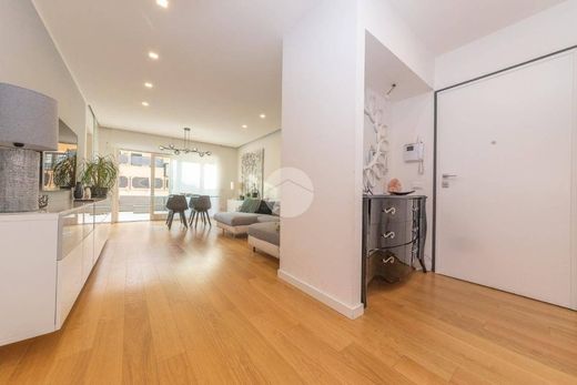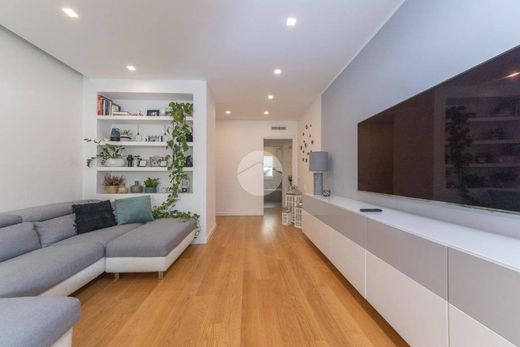 L'ingresso si apre su un ampio e luminoso soggiorno dai toni moderni e raffinati, caratterizzato da un parquet rovere (Listone Giordano) presente in tutti gli ambienti, ad eccezione dei bagni, completamente rivestiti in gres porcellanato.