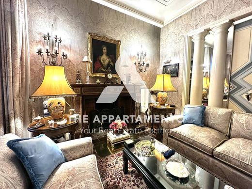 THE APPARTAMENTO è lieta di proporre in vendita la nuda proprietà di un elegante appartamento, posto al piano terra e servito da doppio ingresso, così composto: dall'ingresso principale si accede a una raffinata galleria che conduce sia al salone doppio di rappresentanza e alle due sale da pranzo, una più grande per le cene di rappresentanza e una più piccola per pranzi e cene informali da tutti i giorni, sia a un altra ampia stanza utilizzato come studio o sala relax.