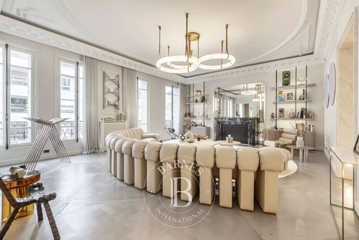 Parigi 8° Courcelles Parc Monceau - Appartamento lussuosamente ristrutturato - 4 camere da letto. Lussuoso appartamento di 212 m² (209 m² "Carrez"), al 3° piano di un bellissimo edificio in stile Haussmann di cinque piani, situato in posizione ideale vicino al Parc Monceau e ai negozi di Rue du Faubourg Saint-Honoré e Rue de Courcelles. Questo appartamento lussuosamente ristrutturato con materiali e finiture di alta qualità comprende un ingresso con guardaroba, un soggiorno, una sala da pranzo, una cucina abitabile semi-aperta arredata e attrezzata, un bagno per gli ospiti e una lavanderia, un corridoio che conduce a una suite padronale con cabina armadio, bagno con doccia-sauna e WC separato, altre tre camere da letto, ciascuna con la propria zona doccia, e un terzo WC separato. Splendida altezza del soffitto di 3,28 m e ristrutturazione eccezionale con splendidi dettagli aggiuntivi: pavimento in parquet, modanature, camino. La domotica consente l'aria condizionata, un impianto audio nascosto nelle pareti, tende elettriche e illuminazione indiretta... L'appartamento dispone anche di un'ampia cantina ristrutturata.