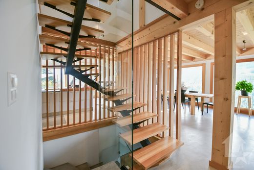 Immerso in un contesto naturale incontaminato, questo splendido chalet di lusso incarna il perfetto connubio tra eleganza contemporanea e autenticità alpina. Con 275 mq di superficie abitabile e 344 mq di superficie totale, offre proporzioni generose, abbondante luce naturale e un comfort eccezionale. Distribuito su tre livelli, dispone di quattro camere da letto, tra cui due sontuose suite padronali di 30 mq e 42 mq, oltre a un'ampia zona giorno di 121 mq dove convivialità e raffinatezza si fondono. Il soggiorno, impreziosito da un camino, si apre su una cucina di alta gamma dotata di elettrodomestici di alta gamma e finiture impeccabili. Ogni spazio è stato accuratamente progettato per creare un'atmosfera calda e funzionale. L'utilizzo di materiali pregiati, armadi a muro e cabine armadio su misura, un sistema di aspirazione centralizzato, altoparlanti integrati nelle zone giorno e una lavanderia completamente attrezzata testimoniano l'attenzione ai dettagli e al comfort. Un ampio garage di 40 mq completa la proprietà. All'esterno, il paesaggio meticolosamente progettato amplia gli spazi abitativi e invita alla contemplazione. Dalle terrazze o dal soggiorno, la vista panoramica a 180° sulle cime del Vallese offre uno spettacolo mozzafiato, che cambia con le stagioni. Qui, il lusso incontra la montagna nella sua forma più pura ed esclusiva, offrendo un ambiente abitativo raro dove eleganza, serenità e natura si fondono perfettamente. Questo splendido chalet è così disposto: Piano seminterrato: ampio ingresso, garage di 40 m², suite padronale di 30 m² con bagno con doccia e WC, terrazza, lavanderia attrezzata, cantina, ripostiglio. Piano seminterrato: soggiorno con camino, angolo lettura, sala da pranzo, ampia cucina, dispensa, due balconi, terrazza arredata, WC per gli ospiti. Primo piano: ingresso, suite padronale con bagno con doccia, WC e spogliatoio (oltre 40 m²), camera matrimoniale di 14 m², camera matrimoniale di 15 m², bagno con doccia e WC. Caratteristiche: Diversi posti auto esterni, 16 pannelli solari, terreno di 796 m², sistema di aspirazione centralizzato, altoparlanti integrati, armadi a muro, lavanderia attrezzata, bella terrazza arredata, accessibile tutto l'anno, diversi balconi. In vendita solo come residenza principale. Posizione: 28 km da Martigny, 8 km da Orsières, 10 minuti dall'Italia o dal comprensorio sciistico di Vichères. Liddes: Liddes-Chandonne è un'incantevole frazione situata nel comune di Liddes, nel cuore del Vallese. Arroccata ai piedi delle Alpi, offre un ambiente naturale incontaminato e un'atmosfera tranquilla, tipica dei villaggi vallesani, dove i tradizionali chalet in legno e pietra si fondono armoniosamente nel paesaggio. La frazione di Chandonne affascina per la sua tranquillità e autenticità, offrendo al contempo un facile accesso alle attività di montagna. In inverno, è un punto di partenza ideale per lo sci, le ciaspolate o le passeggiate invernali, mentre in estate, i sentieri escursionistici permettono ai visitatori di godere appieno dei panorami alpini e dei prati circostanti. Liddes-Chandonne coniuga il fascino discreto di un piccolo borgo con la spettacolare bellezza delle cime del Vallese, offrendo un ambiente di vita eccezionale per chi cerca serenità, natura e privacy in uno splendido scenario alpino.