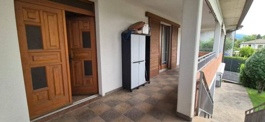 IN POSIZIONE STRATEGICA COMODA PER LE DOGANE, AMPIA VILLA PLURIFAMIGLIARE EDIFICATA NEL 1996, IN PERFETTE CONDIZIONI, SU 2 LIVELLI, COMPRENDENTE 2 APPARTAMENTI COMPLETAMENTE SEPARATI ED AUTONOMI, LIBERI SUI 3 LATI, CON ACCESSO DIRETTO AL GIARDINO DI NATURA PIANEGGIANTE DISTINTO SU 2 LIVELLI; OLTRE AMPIA ZONA SEMINTERRATA CON TAVERNA CON FORNO A LEGNA E CAMINO E 2 AUTORIMESSE PER RICOVERO DI 5 AUTO.