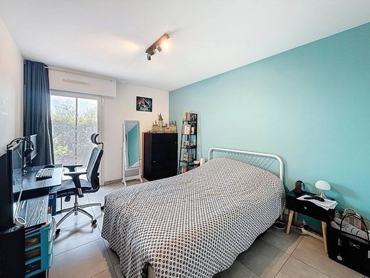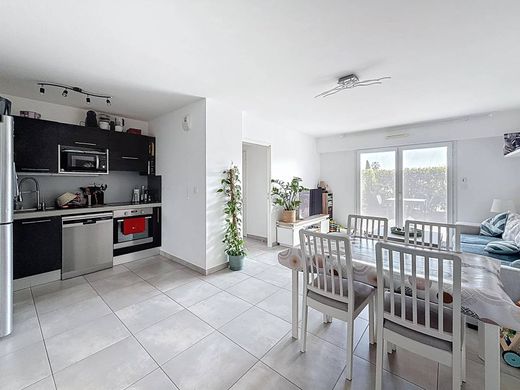 APPARTAMENTO IN VENDITA A SAINT LAURENT DU VAR, ZONA PLATEAUX FLEURIS. In una piccola residenza di lusso a Plateaux Fleuris, questo magnifico appartamento di 69,25 mq con 2 camere da letto (3 locali) al piano terra è composto da un bellissimo soggiorno di 27 mq con cucina attrezzata a pianta aperta, un'ampia camera da letto di 14,35 mq e una seconda camera da letto principale di 13,75 mq con bagno privato e WC. Tutte le stanze si aprono su una terrazza di 24,80 mq e su un giardino di 90 mq con ulivi. Sono inoltre presenti un bagno con doccia e un WC separati. L'appartamento è in ottime condizioni. Viene venduto con un garage doppio con porte motorizzate. Una rarità sul mercato, la visita è altamente consigliata! Immobile soggetto a regime di comproprietà, composto da 15 unità.