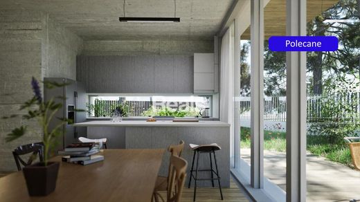 Casa bifamiliare moderna e senza tempo di 156 m² (+ mansarda di 48,5 m²), su un lotto di 340 m², che costituisce una proprietà indipendente dalla forma unica e dall'eccellente disposizione degli ambienti. Il progetto, realizzato da un rinomato studio di architettura e ispirato alle caratteristiche case Świdermajer – simbolo di Radość e dell'intera linea Otwock – è caratterizzato da una forma minimalista, interni perfettamente pianificati e un notevole spazio aggiuntivo al livello -1, che collega i due edifici. Disposizione degli ambienti: Livello -1 – altezza 2,8 m; superficie 65 m2 - garage per 2 auto - sauna - ripostiglio Livello 0 – altezza 3 m - soggiorno con angolo cottura – superficie 35,4 m2 - bagno con doccia – 2,5 m2 - armadio – 3 m2 - ingresso – 6 - ripostiglio – 3,2 riscaldamento a pavimento Livello 1 – altezza 2,7 m - camera da letto con accesso alla terrazza – superficie 14,8 m2 - camera – 9,3 m2 - bagno con accesso alla terrazza – 9,6 m2 - ingresso – 7,5 riscaldamento a pavimento Livello 2 – altezza da 1,2 m a 3,2 m - camera – 48,5 m2 riscaldamento a pavimento; possibilità di divisione in 2 camere e un bagno (allacciamenti previsti) La casa, come la sua gemella più grande, è ben progettata e le moderne tecnologie le conferiscono un ulteriore tocco di lusso. Enormi finestre in ogni stanza si affacciano su splendidi pini secolari. La casa ha sempre aria fresca senza dispersioni di calore grazie al recupero di calore e alla struttura in cemento. La struttura verticale della facciata è dotata di un discreto sistema di fissaggio e di speciali corde progettate per creare una parete verde e vivente. Sono disponibili tutti i servizi urbani. Una graziosa strada asfaltata dista solo 8 minuti a piedi dalla stazione SKM... silenzio, spazio, luce, profumo di pino... l'elenco è infinito. Vi invito a visitarla. La casa viene venduta nello stato di fatto in cui si trova; le foto mostrano una visualizzazione che rispecchia perfettamente la disposizione degli ambienti.