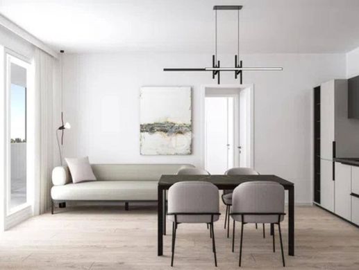 I serramenti sono in PVC bianco con cassonetti rivestiti e avvolgibili elettrici in alluminio; porte interne laccate, battiscopa e portoncino blindato riprendono la stessa finitura, mentre pavimenti e rivestimenti sono previsti in gres porcellanato in vari formati. L’immobile viene consegnato con predisposizione per l’impianto antifurto, per la climatizzazione, per la batteria di accumulo del fotovoltaico, per la fibra ottica e con videocitofono digitale, oltre a un sistema di videosorveglianza condominiale.