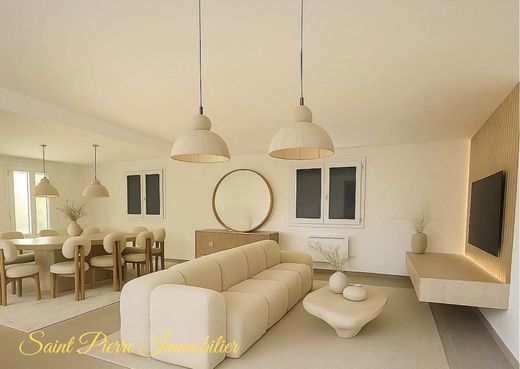 Vicino al mare, in posizione dominante e leggermente isolata dal paese, questa splendida casa a un piano di 115 m² offre numerosi vantaggi. Completamente ristrutturata quest'anno, vanta uno stile provenzale all'esterno e un interno contemporaneo. Comprende tre graziose camere da letto, un ampio e luminoso soggiorno di 50 m² e un ampio ufficio. Il suo punto di forza più importante è il terreno: un lotto di circa 1800 m², in parte edificabile. Al momento della vendita verrà rilasciato un permesso di costruire approvato per un ampliamento di 70 m². Un altro importante vantaggio sono le spese notarili ridotte. Anche in questo caso, questa casa offre così tanti vantaggi che potrebbe adattarsi a una vasta gamma di progetti. Non vediamo l'ora di mostrarvela.