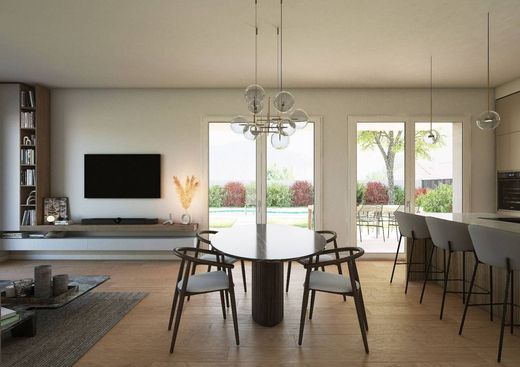 Tutta la villa si affaccia su area esterna pavimentata e coperta di ampia metratura. La piscina è posizionata in prossimità della zona giorno per poterne godere della vista anche dall'interno. Il grande giardino completa la proprietà.