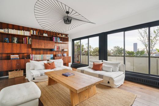 ECOLE MILITAIRE - PARIGI, SWISS VILLAGE, attico di 160 mq circondato da terrazze e balconi con viste eccezionali, tra cui la Torre Eiffel e la Cupola di Les Invalides. Situato agli ultimi due piani di un edificio di pregio, questo duplex si distingue per la sua luminosità, i volumi armoniosi e la vista libera su Parigi. Combina eleganza e comfort contemporaneo di alta qualità. Il primo piano è organizzato attorno a un bellissimo ingresso che conduce a un soggiorno inondato di luce grazie alle sue ampie vetrate. Una suite padronale con bagno privato (doccia, vasca e WC), altre tre suite, ciascuna con bagno privato con doccia e WC, e vista sulla Torre Eiffel. Una lavanderia, un corridoio con armadi e un bagno per gli ospiti completano l'insieme. Al piano superiore, la sala da pranzo con camino si apre su una terrazza di 45 mq con vista libera sui tetti parigini e sui monumenti storici, pensata per momenti conviviali. Una vasca e una doccia in stile nordico aggiungono un tocco di relax. La cucina semi-aperta si affaccia su un patio con una vista eccezionale sulla Torre Eiffel. Completano l'appartamento un'ampia cantina e un doppio posto auto. È possibile acquistare una camera di servizio di 9 mq con doccia e angolo cottura a un costo aggiuntivo. Questo raro appartamento conquista per la qualità delle finiture, la terrazza soleggiata e il panorama unico. È un luogo tranquillo e accogliente.