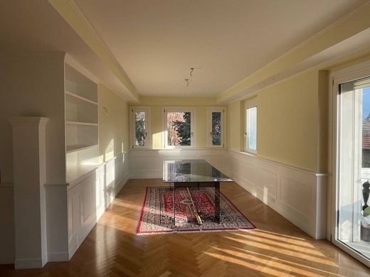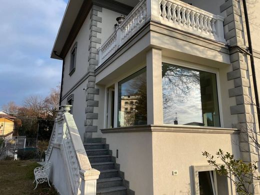 Via Montello, in posizione dominante nelle immediate vicinanze della scuola Europea, proponiamo una splendida villa singola in ottime condizioni di 509mq coperti complessivi oltre a circa 1.000mq di giardino circostante. La villa è su tre livelli fuori terra oltre ad un piano parzialmente seminterrato. Al piano rialzato di ingresso padronale troviamo l'ampio salone con camino, la cucina abitabile, la zona studio e servizi, con comodi accessi al giardino; al primo piano tre camere da letto, due bagni ed un terrazzo. Il piano mansarda è open-space, perfettamente coibentato. Al piano parzialmente seminterrato l'ampia taverna, la cantina, un piccolo locale palestra, il vano degli impianti. Ogni livello ha una pianta di circa 150mq. L'immobile è stato totalmente ammodernato pochi anni fa; cappotto termico nel perimetro, riscaldamento in tutti gli ambienti a pannelli radianti nel pavimento; caldaia a condensazione, tripli vetri in tutti i serramenti, tapparelle comandate elettricamente. Impianto di antifurto volumetrico e perimetrale. Due passi carrai, ampi spazi di parcheggio. Posizione dominante, molto silenziosa e luminosa. Disponibile subito.
