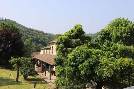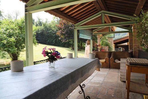 Doppia autorimessa e piccolo magazzino completano la proprietà circondata da ampio giardino privato di 3.900 mq., c.a., con area dedicata a frutteto ed oliveto.