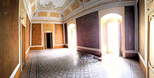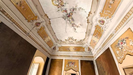 Al piano terra si individuano due locali commerciali (categoria catastale C1), con ingressi indipendenti su via Maggiore Orlandi ed un portone principale che da l’accesso all’interno del palazzo dove trovano spazio dei locali deposito con importanti botti in legno, due cantine, atrii e giardini e un androne-scala che collega il piano nobiliare, composto da un cavedio, dodici locali (alcuni di essi sono arricchiti da soffitti affrescati e pavimentazione in graniglie e cementine d’epoca), una cucina, bagni e, a chiudere il piano, una terrazza di sfogo. Al secondo piano si trovano soffitte ed un ulteriore terrazzino.