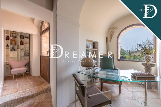 Prestigiosa proprietà di grande rilevanza storica con piscina in vendita nelle incantevoli colline di Monteriggioni. La tenuta si compone di una villa principale, una dependance e una pool house, per una superficie complessiva di circa 537 mq, con 5 camere da letto e 6 bagni, il tutto circondato da 18 ettari di terreno che garantiscono privacy e un contesto naturale di rara bellezza. Inserita in un paesaggio di straordinario valore storico e ambientale, la proprietà rappresenta una rara opportunità nel cuore più autentico della Toscana. Un’oasi di tranquillità che unisce esclusività e comfort, grazie alla posizione strategica che consente di raggiungere facilmente i principali centri della regione: Siena dista soli 12 km, mentre Firenze è raggiungibile in circa 70 km.