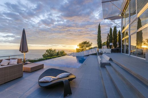 Magnifica proprietà di 450 mq distribuita su tre ottimi livelli e costruita su un terreno di 1100 mq. Al piano terra si trova un ampio soggiorno con cucina e un bagno. Dal soggiorno si accede ad uno straordinario giardino con piscina e vista infinita sul Mar Mediterraneo. Al primo piano si trova uno studio con accesso ad un terrazzo anch'esso con vista panoramica e, a seguire, due camere da letto tipo suite. Mentre il secondo piano offre una master suite con un ampio spogliatoio, vasca da bagno e doccia di design, oltre a due camere da letto suite. Nella zona esterna è presente un piccolo annesso alla casa per il tempo libero che dispone di soggiorno, palestra e sala giochi. Uno spazio ideale per godersi il tempo libero. Questa casa è stata progettata per soddisfare i più alti standard di qualità. Per questo motivo dispone di elettrodomestici della marca Gaggenau, pavimenti in microcemento, piscina riscaldata, sistema domotico, pannelli solari per riscaldare l'acqua e la piscina, oltre ad un ascensore a livello della strada con accesso al piano terra della casa. .