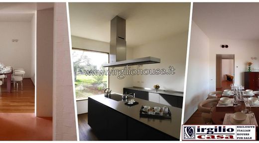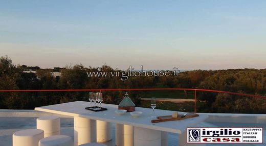 Virgilio Casa propone in vendita a Carovigno, Meravigliosa Villa di nuova costruzione con piscina, circondata da 2,5ettari di un fantastico oliveto secolare privato, in posizione collinare, nella campagna Pugliese. Superficie lorda complessiva 340 mq, con salone triplo, cucina abitabile, quattro camere, cinque bagni, portico con vista panoramica, piscina. Posizione geografica A un quarto d'ora dal Mare adriatico (10 km) e a 6 km. da Ostuni è qui che si trova Villa degli ulivi, un’elegante residenza di campagna con piscina. Uno scenografico viale costeggiato da ulivi, sale attraverso il terreno privato conducendo fino alla villa posta in posizione collinare, protetta da muretti a secco e affacciata a valle sul profondo panorama incontaminato che lascia intravedere il mare tra le fronde degli alberi. I centri abitati più vicini, punto di riferimento per le necessità quotidiane, sono il pittoresco borgo della Citta Bianca, a 6 km, Carovigno a c.a 1,5 km. L'aeroporto di Brindisi si trova 25 km (20minuti d'auto), mentre l'aeroporto di Bari è raggiungibile in meno di 1 ora (95 km). L’abitazione si estende su un unico livello per un totale di 478 mq. lordi, La zona giorno al piano terra, caratterizzata da un triplo salone , è illuminata da grandi finestre che guardano la distesa degli ulivi secolari; dalla sala da pranzo si esce verso il portico, ideale per piacevoli pranzi o cene all’aperto. La zona notte al piano terra, ospita 4 camere con 5 bagni e uno spogliatoio. Gli spazi interni sono caratterizzati da ampie finestre che donano luminosità agli ambienti e una splendida vista sul panorama.in una piccola radura nell'oliveto di proprietà di c.a 2,5 ettari un'area perfetta per una casa da costruire, senza dover abbattere gli alberi di ulivo secolari che sono sparsi su tutta laProprietà. Il piano poligonale della casa occupa l'area più ampia possibile, adattando leggermente i suoi confini verso le piante esistenti e creando un volume con un aspetto monolitico.