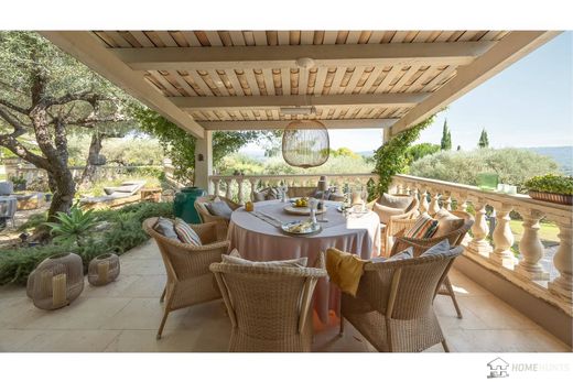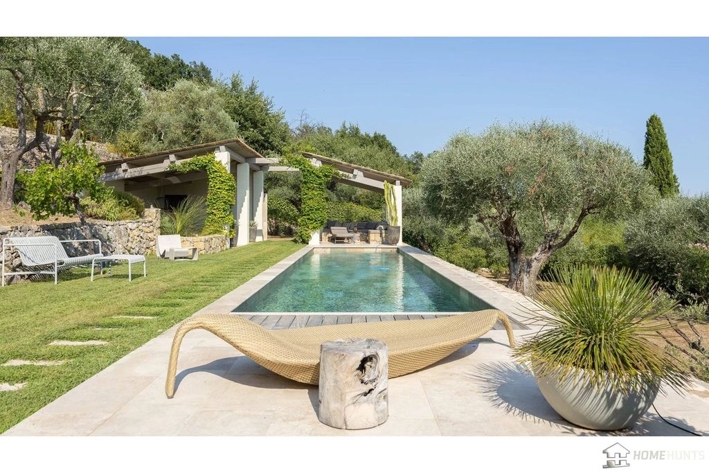 高品質の素材を用いて全面改装された美しい物件で、プロヴァンスの魅力と現代的な快適さが見事に融合しています。日当たりの良い丘の中腹に佇むこの物件からは、周囲の田園地帯の息を呑むようなパノラマビューをお楽しみいただけます。290㎡の敷地には54㎡のゲスト用アパートメントがあり、果樹、樹齢100年のオリーブの木、キョウチクトウ、ラベンダーなど、様々な樹木が生い茂る4,200㎡の敷地に建っています。母屋には、広々としたリビングルーム、キッチン、ベッドルーム4室、バスルーム4室、ドレッシングルーム(5つ目のベッドルームとしても利用可能)、ゲスト用トイレ、ジム、サウナ、収納室、アイロン設備付きのランドリールーム、大きなパントリー、そして格別な快適さを提供するワインセラーを備えています。屋外には、逆流式温水プール、プールハウス、屋外キッチン、そしてエンターテイメントに最適なラウンジエリアがあります。さらに、2台のカーポートもご利用いただけます。