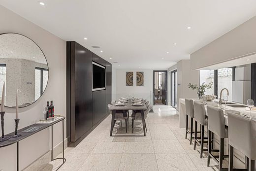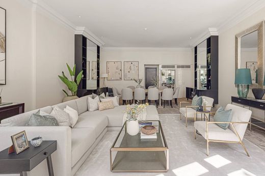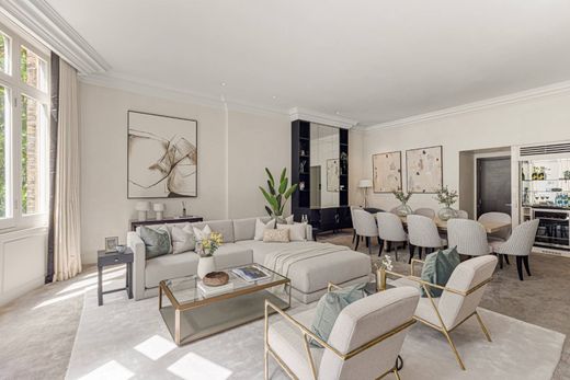 この広々とした高級物件は、ロンドン中心部の高級住宅街ベルグレイヴィアにある魅力的な時代物の家の 3 階を占めています。地下 1 階、1 階、2 階には、エレガントなリビング エリアと贅沢な寝室スペースがあります。この家には、居心地の良いダイニング ルームと広いダイニング ルーム、応接室があります。また、十分な広さの 5 つのベッドルーム (うち 4 つには専用バスルーム付き)、ゲスト用パウダー ルーム、囲いのある中庭、2 つの屋外テラスもあります。シックなインテリア デザインと洗練されたレイアウトは、一体型エアコンなどのモダンなタッチによってさらに引き立てられています。この 3 階建てフラットは、ポント ストリートとベルグレイブ スクエアの間のロウンズ ストリートに位置しており、この高級物件はベルグレイヴィアの羨望の住所となっています。大使館、五つ星ホテル、ミシュランの星を獲得したレストラン、プライベートガーデンに囲まれたロンドンのこのエリアは、入手可能な物件の中でも最高級のエリアの一つと考えられており、バッキンガム宮殿やハイドパークから目と鼻の先にあるこのタイプの物件が入手可能になることはめったにありません。