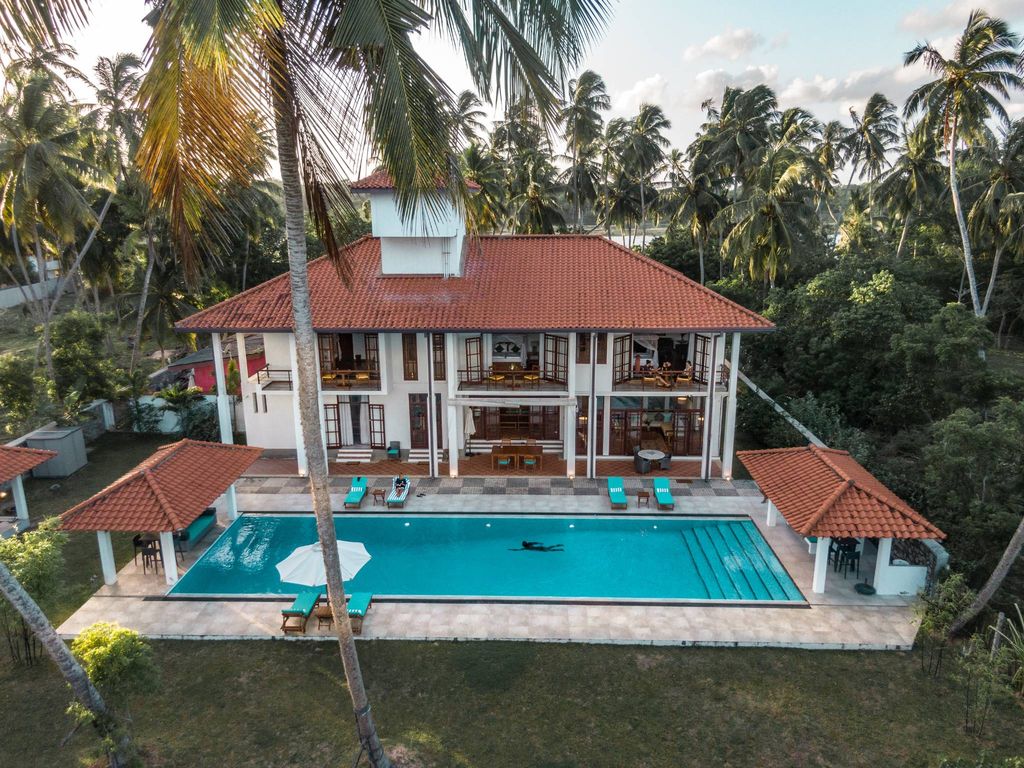 TiLa は、1 エーカーの敷地に建つ、エアコン完備の 5 ベッドルーム、800 平方メートルのヴィラです。レケワ ビーチに面し、2.8 km の美しい砂浜とヤシの木が広がっています。自然のままの完璧な TiLa のロケーションは、スリランカ南東海岸の絵に描いたような場所です。ヴィラの 1 階には、広いラウンジとダイニング エリア、バー、ココナッツの木が並ぶ庭園、プール、インド洋に面した中庭があります。緑豊かなトロピカル ガーデンと安定した海風が、ここをくつろぎ、自然と再びつながる特別な場所にしています。4 つの専用バスルーム付きベッドルームは家の上階にあり、各部屋には海または家の裏にあるラグーンに面した専用バルコニーが付いています。各部屋にはキングサイズ ベッド、エアコン、金庫、ワードローブ、天井ファンが備わっています。また、1 階にはクイーン ベッド付きのエアコン完備の専用バスルーム付きベッドルームがあります。建物の裏側にはエアコン付きのオフィスもあります。さらに、ヴィラにはスタッフ用の宿舎とキッチンがあり、警備員が 24 時間巡回しており、建物の周囲には CCTV が設置されています。