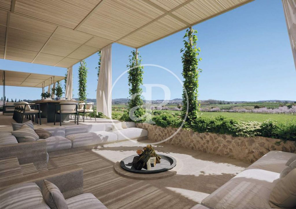息を呑むほど美しい景観に囲まれたアルガイダの町へ移動します。222,557平方メートルの敷地は、豊かな農地、ブドウ園、風に揺れる小麦畑、広大なオリーブとアーモンドの木立に囲まれ、すべてがこの特別なデザインの中心にあります。このプロジェクトは、合計5つの独立した家と4つのプールで構成されています。メインハウスのサヤは、敷地全体の中心に堂々と建っています。この特別な物件には、専用バスルーム付きの豪華なベッドルーム3室、追加のゲスト用トイレ、ダブル暖炉付きのリビングルーム、独立したダイニングルームがあります。中央のオープンアトリウムは自然換気を促し、屋外アクティビティに最適な場所です。2つ目のプールハウス、シャリは、家族や友人のための広々とした宿泊施設です。大きな窓と噴水で活気づけられた中庭を備えたオープンプランのデザインです。すべての部屋から屋外エリアに直接アクセスでき、屋内と屋外の調和のとれた生活が可能です。丘のふもと、風車の裏側には、プライベートプールを備えた美しいゲストハウス「サマ」があり、ワークスタジオとしてもご利用いただけます。このレジデンスには、専用バスルーム付きのベッドルームが4室、広いリビングルーム、そして8名様まで快適にご宿泊いただける広々としたキッチンが備わっています。素晴らしい景色と周囲の自然に囲まれたこのレジデンスは、仕事とリラクゼーションを組み合わせるのに最適な場所です。他の2軒、スタッフの宿泊施設として使用されている「シラ」と、プライベートプールを備えた「セラ」は、ゲストハウスとしてご利用いただけます。「セラ」は快適さと機能性を兼ね備えた理想的な宿泊施設で、ベッドルームが4室あり、そのうち3室にはウォークインクローゼットが備わっています。緑豊かな庭園に囲まれたこの邸宅からは、すぐ近くにある「禅プール」へ直接アクセスできます。一方、「セラ」はオリーブ畑にひっそりと佇む居心地の良い宿泊施設で、広々としたテラスからはトラムンタナ山脈の素晴らしい景色を望めます。住宅には最高品質の材料と設備のみが使用され、ガゲナウの家電製品を備えたカスタムキッチン、無垢の天然石のシンク、ドルンブラハトとゲベリットの衛生設備とバスルームの設備などが備わります。建設は順調に進んでおり、2024年に完成する予定です。この物件には、1,300本のアーモンドの木、500本のオリーブの木、100本の果樹とナッツの木、12個の養蜂箱、小麦畑、小川、2.8kmのジョギングトラックがあります。また、屋外映画館、トルコ式バスを備えたサウナ、フィットネスルーム、ヨガプラットフォーム、ワインセラーもあります。その他の設備には、ソーラーパネルを設置するオプション付きの電気、床暖房付きのガスセントラルヒーティング、専用の井戸、スマートホームシステム、24時間ビデオ監視とアクセス制御、Sonos経由で接続できるSonanceとBoseのサウンドシステムなどがあります。ヨガプラットフォームを備えた復元された歴史的な製粉所。2.8kmのジョギングトラック。理想的な環境にあり、パルマ、空港、インターナショナル スクール、ビーチ、高級ショップまで車で 25 分以内という絶好のロケーションです。
