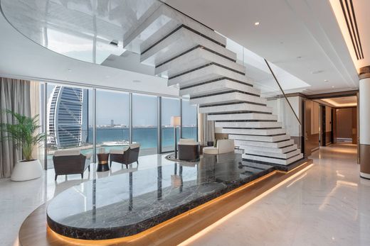 許可番号:71425638206 ドバイ屈指の高級沿岸地区、マルサ アル アラブに、真に格別の5ベッドルーム ペントハウスをご紹介します。象徴的なブルジュ アル アラブとジュメイラ ビーチ ホテルのすぐそばに位置するこのプライベート レジデンスは、スーパーヨットの流線型のデザインを反映した建築で、アラビア湾の遮るもののない景色を望めます。住宅には、海、パーム、ドバイの象徴的なスカイラインのパノラマ ビューを引き込む床から天井までの窓に囲まれた2階建てのリビングルームがあります。この窓は、シームレスなガラスの手すりが付いた広々としたバルコニーにつながっています。オープン レイアウトは、印象的な彫刻の階段によって支えられたフォーマルおよびインフォーマルなエンターテイメント スペースに無理なく続いています。その他の主な部屋には、プライベート ジム、7 つのエレガントなバスルーム、5 つのゆったりとしたサイズのベッドルーム スイートがあります。最大の特徴は、デッキとジャグジーを備えた屋上テラスで、夕日を眺めながらブルジュ・アル・アラブを中心とした絶景を堪能するのに最適です。居住者はプライベートビーチ、専用ヨットマリーナ、そしてインフィニティエッジプール、受賞歴のあるスパ、ウォーターフロントのレストランやショップなど、厳選されたレジャー施設に直接アクセスできます。この開発地は、高級リゾート、文化施設、活気ある社交界が集まるドバイで最も洗練された地区の一つ、ジュメイラ内の安全なゲートアイランドに位置しています。マルサ・アル・アラブは、24時間対応のバレーパーキング、セキュリティ、居住者専用ラウンジ、ウェルネス施設、ビジネスアメニティへのアクセスなど、コンシェルジュレベルのライフスタイルを提供します。優雅な集まりを開催するにも、静かな海辺の朝を楽しむにも等しく最適な、長期滞在型のレジデンスを借りる貴重な機会です。この素晴らしい物件の内覧をご希望の方は、お気軽にお問い合わせください。