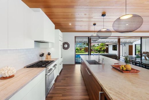 2022年に完成したこのクラシックなビーチフロント住宅は、広々としたモダンな物件へと再設計されました。21 Kalakaの独特な高さは、圧倒的な眺望とプライバシーを提供し、真のビーチフロント愛好家が求める要素を備えています。Mokulua High-Performance Builderによって建設されたこの物件は、ビーチサイドライフに洗練されたエレガントな雰囲気を添えています。中央のオープンリビングエリアは海とプールへと自然につながり、5つのベッドルーム(うち4つは専用バスルーム付き)とプールルームが周囲を囲んでいます。朝食用バーと独立したゲストウィングは、プライバシーと大家族のためのゆとりある空間を提供します。卓越した職人技、最高級の素材、そして洗練された間取りが、カイルア・ビーチフロントで最も充実した物件となっています。