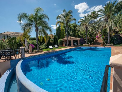 시에라 블랑카 (Sierra Blanca)의 안전하고 유명한 고 룬드에 위치한 안달루시아 스타일의 빌라로 바다 전망을 제공합니다.