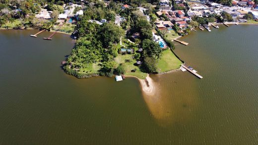 플로리아노폴리스의 시네마틱 라군사이드 맨션 플로리아노폴리스의 아름다운 콘세이상 호수 가장자리에 위치한 이 놀라운 맨션의 절대적인 화려함을 발견하세요. 1,200m²의 넓은 건축 면적과 4,370m²의 넓은 부지에 자리 잡은 이 부동산은 고급스러움과 편안함의 의미를 새롭게 정의합니다. 이 부지는 40m의 인상적인 정면과 숨 막힐 듯 아름다운 전망을 제공하는 라군을 바라보는 전용 부두를 갖추고 있습니다. 이 건축 프로젝트는 넬슨 테이셰이라 네투가 설계했으며, 5개의 침실은 3개의 호화로운 스위트룸과 2개의 넓은 데미 스위트룸으로 나뉩니다. 이 부동산에는 휴식을 위한 온수 실내 수영장과 사우나가 있습니다. 소셜 공간은 거실과 식당, 게임룸과 홈시어터, 데크가 있는 여러 개의 야외 공간, 바비큐와 완비된 에어컨 주방이 있는 고급 레스토랑 등 여러 공간으로 나뉩니다. 또한, 업무 활동을 위한 편안한 사무실도 있습니다. 정원은 아름다운 경관을 자랑하며, 여러 토종 나무, 과실수, 그리고 야자수가 조경되어 있습니다. 야외 수영장은 화창한 날에 특히 좋으며, 수영장 주변에는 평화로운 시간을 만끽하거나 명상을 하거나 야외에서 좋은 책을 읽을 수 있는 코너가 여러 개 있습니다. 최고의 위치에서 럭셔리와 편안함을 누릴 수 있는 특별한 기회입니다. 더 자세한 정보나 방문 예약은 저희에게 문의해 주세요.