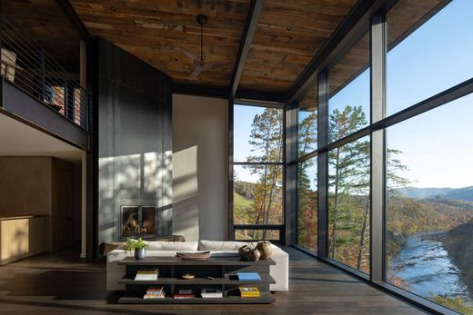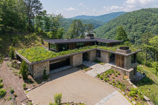 이 건축적 보물은 프랑스 브로드 강의 굽은 곳에 자리 잡고 있으며, 자연을 향한 창문 벽과 재활용 헴록 천장, 석조 벽, 맞춤형 캐비닛, 두 개의 원시 강철 벽난로를 포함한 세부 사항에 대한 틀림없는 주의가 있습니다.주층은 개방형 주방, 대형 거실과 접이식 스크린이 있는 현관, 맞춤형 화장실, 워크인 옷장, 테라스, 스파와 같은 욕조가 있는 휴식을 위한 주 스위트로 구성되어 있으며, 모두 멋진 강과 산 전망을 제공합니다.부유 계단을 따라 사무실과 운동 공간으로 이동하며, 각 공간은 야외로 둘러싸인 창문으로 둘러싸여 있습니다.하층에는 테라스와 보체 코트로 열리는 유리 슬라이딩 도어가 있는 대형 패밀리 룸과 강과 산 전망을 감상할 수 있는 3개의 실내 욕실이 있습니다.이 층에는 강철과 유리 와인 저장고, 풀 바, 두 번째 세탁실이 있습니다.정리된 토종 식물과 살아있는 지붕은 건축과 자연의 조화로운 조화를 이룹니다.