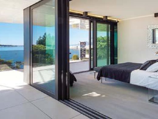 Nieuw luxe appartement met een eigen tuin en uitzicht op zee! De appartementen omvatten ook een split-level appartement bestaande uit 4 suites, een eetkamer, prachtige ontvangstruimten van 290 m² en een terras van 100 m². Een tweede blok bestaat uit drie appartementen van 150 m² met eigen toegang, direct bereikbaar met een lift die een panoramisch uitzicht biedt. De nieuwe residentie ligt in het hart van de beroemde wijk Californie. Gelegen in weelderig groen, biedt het een uniek uitzicht over de Middellandse Zee. Een exclusief uitzicht, van de Lérins-eilanden tot het Esterel-massief, maakt dit adres tot een prijs die al tientallen jaren jaloerse blikken trekt van beroemdheden over de hele wereld. De prestigieuze residentie bestaat uit twee delen en bestaat uit slechts 9 appartementen, met vloeroppervlakken variërend van bijna 150 m² tot 400 m² en uitgestrekte terrassen die direct uitkijken op de zee. Op de bovenste verdieping is een terras op het zuiden voor het plezier en genot van de toekomstige eigenaren, dat toegang biedt tot een solarium en een panoramisch zwembad, dat ook een prachtig uitzicht op de Lérins-eilanden biedt. Diensten in het gebouw: - conciërge (ontbijt en kranten mogelijkheid) - bewaker tijdens de nacht - 24 uurs beveiliging - shuttle - zwembad op het dak - solarium De opvallende architectuur en zorgvuldig ontworpen interieurstructuur en inrichting benadrukken het unieke en originele karakter van het gebouw. De houten vloeren in de slaapkamers en de vierkante tegels van 120 cm in de ontvangstruimten tot de massief stenen badkamers getuigen van zijn originaliteit. De у residentie biedt een betoverend uitzicht over de Middellandse Zee, vanaf de hoofdingang, vanuit alle appartementen en vanaf de glazen lift die de verschillende verdiepingen bedient. De hoge kwaliteit van zijn unieke kenmerken en de aandacht die aan elk detail is besteed, zullen eigenaren comfort en luxe bieden in een ongeëvenaarde omgeving. Buitenmuren die zijn ontworpen voor maximale transparantie garanderen goed verlichte kamers met uitzicht tot aan de mediterrane horizon. Er is speciale aandacht besteed aan zowel de esthetische als praktische aspecten van elke kamer om ervoor te zorgen dat hun toekomstige eigenaren blij zullen zijn. Al deze appartementen bieden luxe en selecte faciliteiten, waardoor hun nieuwe eigenaren een nog hogere kwaliteit en meer comfort krijgen. Al deze zorgvuldige, elegante details in het hele pand zorgen voor een moderne ambiance van luxe en comfort in elk appartement. Elk van de negen appartementen heeft een panoramisch uitzicht op zee van de Lérins-eilanden en de baai van Cannes.