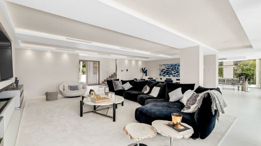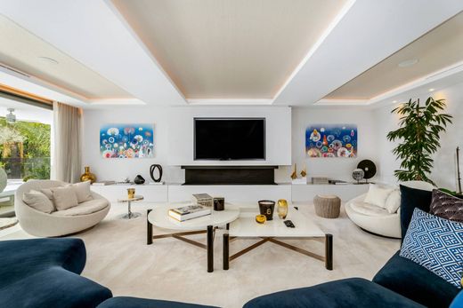Villa Queen: Luxe vakantievilla met jacuzzi op het dak, bioscoop en spa in Cascada de Camoján. Deze luxe villa, gelegen in de prestigieuze beveiligde woonwijk Cascada de Camoján, biedt een onvergetelijk kort verblijf in een van Marbella's meest veilige en exclusieve enclaves. Omgeven door weelderige vegetatie en met een panoramisch uitzicht op de Middellandse Zee en de berg La Concha, is het een privé-retraite op slechts enkele minuten van de stranden, Puente Romano en het centrum van Marbella. Ontworpen met ultiem comfort en stijl in gedachten, beschikt de woning over meer dan 1.100 m² binnenruimte op een perceel van 5.300 m². De villa beschikt over 8 slaapkamers met en-suite badkamers, meerdere woonruimtes en diverse entertainmentzones, waaronder een privébioscoop, bar, speelkamer en wijnkelder. De open woon- en eetruimtes sluiten naadloos aan op elegant ingerichte terrassen, waardoor een ideale overgang ontstaat tussen binnen en buiten. Gasten kunnen genieten van een dakterras met jacuzzi, bioscoopprojector en panoramisch uitzicht, evenals een privé wellnessruimte met een volledig uitgeruste fitnessruimte, sauna en binnenzwembad. Buiten zijn er verschillende loungeplekken verspreid over de tuin, evenals een eethoek in de openlucht en een barbecue. De villa beschikt ook over domotica, vloerverwarming, centrale airconditioning, een lift en zonnepanelen. Met een elegant interieur, zorgvuldig ontworpen suites, hoogwaardige afwerking en voorzieningen zoals een verwarmd buitenzwembad, een dubbele garage en 24-uurs beveiliging, is deze villa ideaal voor gezinnen en groepen die op zoek zijn naar een luxe en privé-uitje in de meest prestigieuze woonwijk van Marbella.