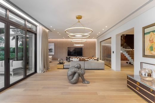 Dubai Sotheby's International Realty presenteert met trots deze uitzonderlijke Royal Residence-villa met 5 slaapkamers in Jumeirah Zabeel Saray, The Crescent, Palm Jumeirah. Als een van de slechts 10 Royal Residence-villa's aan de kust is dit prachtige luxe pand een klasse apart. De villa is vakkundig ontworpen door de talenten van het Europese bureau Urbon Design en beschikt over op maat gemaakte details, waaronder een volledig uitgeruste designkeuken met een op maat gemaakte bronzen en Amerikaanse walnootafwerking. Andere hoogtepunten zijn Miele-apparaten, Prociosa-verlichting, LASVIT-glazen scheidingswanden, TOTO-wc's, Duitse op maat gemaakte stenen spoelbakken en handgemaakte designmeubels van Minotti, Giorgetti, Henge, Flou, DEDON, Ivano Radaelli en Twils. De villa beschikt over uitnodigend ruime woonruimtes, een inpandige lift, spa-achtige badkamers, een slim domoticasysteem, een privéterras en een prachtig aangelegde tuin met buitenkeuken. Bewoners kunnen genieten van een buitengewoon uitzicht op de zee, de zonsondergang, de jachthaven en de skyline, evenals de unieke voordelen van het leven in de koninklijke residenties van Jumeirah Zabeel Saray. Getrakteerd op VIP-diensten van dit wereldberoemde vijfsterren horecamerk, waaronder butler-, housekeeping-, valet- en conciërgediensten, hebben bewoners ook toegang tot het privéstrand en kunnen ze profiteren van alle fantastische voorzieningen en faciliteiten in het resort. De luxe Talise Ottoman spa, talloze fitnesscentra, zakelijke faciliteiten en fantastische eet- en uitgaansgelegenheden zijn er om er maar een paar te noemen. Neem vandaag nog contact op om dit koninklijke paleis aan de kust te verkennen om een bezichtiging te regelen.