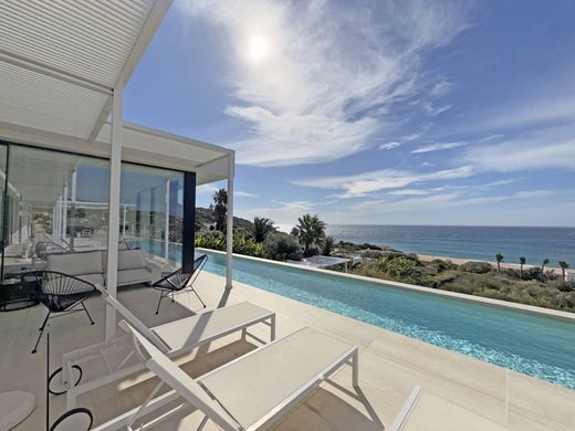 Dining and Living Area: A spacious and inviting area where the dining room and living room—with its own library—are fully oriented toward the sea, creating an atmosphere of serenity and luxury. With the help of a telescope located here, and with a bit of luck, you can observe whales, dolphins, and a wide variety of bird species that inhabit and cross the Strait of Gibraltar and its natural park.
