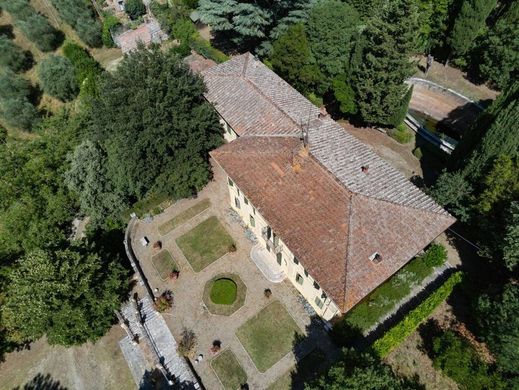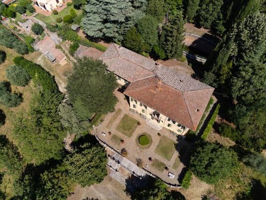 Deze elegante 19e-eeuwse villa is gelegen in het noordelijke deel van de prachtige stad Siena, beroemd om de Palio-paardenrace en de artistieke schatten in het centrum. De villa is in 5 minuten met de auto of te voet te bereiken, na een aangename wandeling. De woning is toegankelijk via drie opritten, waarvan er één een karakteristieke laan met hoge cipressen heeft die leidt naar een elegante schaartrap die naar de tuin voor de villa leidt. Bij binnenkomst leidt een ruime hal naar een driepersoonskamer met brede bogen en een grote open haard. De andere vleugel van de begane grond herbergt een studeerkamer, een aangename eetkamer en een historische woonkeuken met een grote open haard en een open haard. Buiten bevinden zich een prachtige citroenschuur en toegang tot de ondergrondse kelders. De eerste verdieping biedt een grote, lichte woonkamer met een unieke houten vloer en drie ruime hoofdslaapkamers, elk met een eigen badkamer. Vanaf deze verdieping is er directe toegang tot de achtertuin via een deur met uitzicht op de grote fontein die dit deel van het park siert. Op de slaapkamerverdieping leidt een trap naar de zolder, waar zich een grote biljartkamer, twee slaapkamers, een badkamer en extra bergruimtes bevinden. Het appartement van de beheerder bevindt zich naast de ingang van de slaapkamer, aan de achterzijde van het grote park, en bestaat uit een hal, woonkeuken, drie kamers, een badkamer en twee aparte bergruimtes. De ligging van de woning is strategisch, zowel vanwege de centrale ligging nabij Siena als vanwege de privacy, aangezien het grote park het pand beschermt tegen lawaai en overlast.